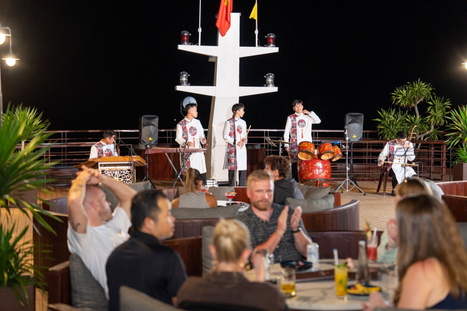 17.00 – 18.00 Trải nghiệm mặc trang phục truyền thống Việt Nam (áo cổ phục) – miễn phí dành cho khách, lưu lại những khoảnh khắc đáng nhớ giữa khung cảnh di sản vịnh Bái Tử Long.
