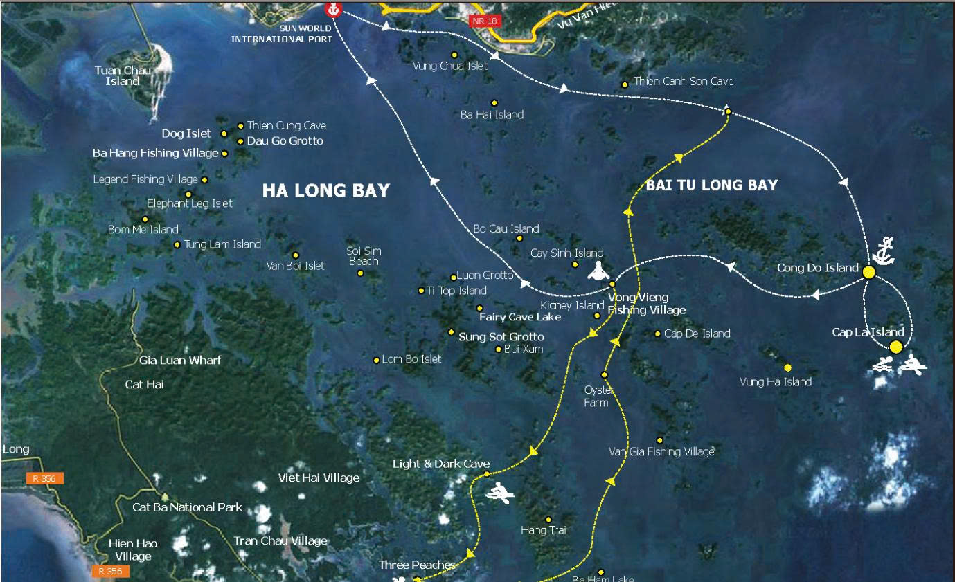 09.00 Trở lại du thuyền Cycad và tiếp tục hải trình trở về Cảng Quốc tế Sunworld với tuyến đường khác để ngắm nhìn vẻ đẹp của vịnh
