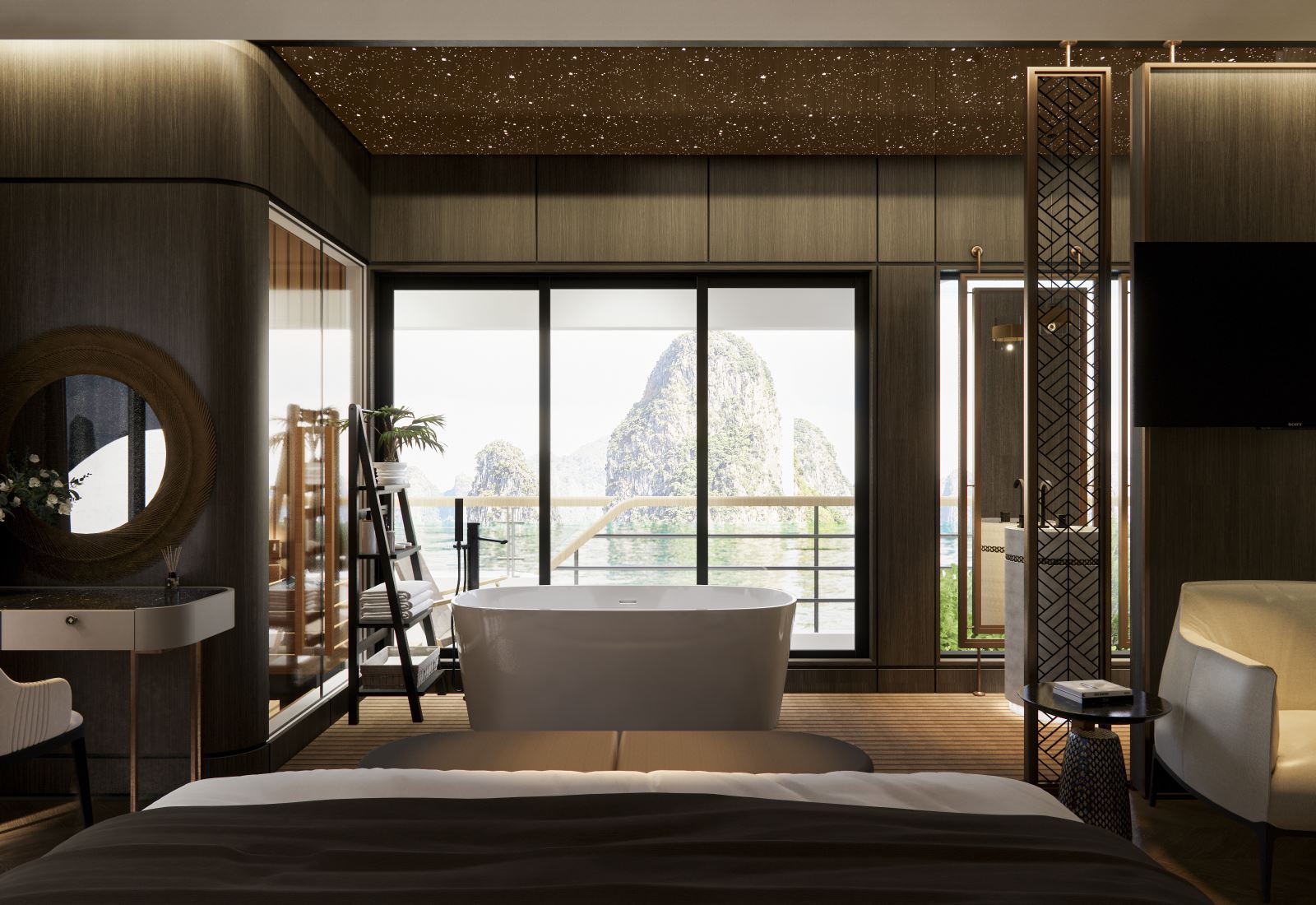 - Du thuyền 6 sao mới nhất mang phong cách thiết kế tinh tế và dịch vụ chuẩn mực.