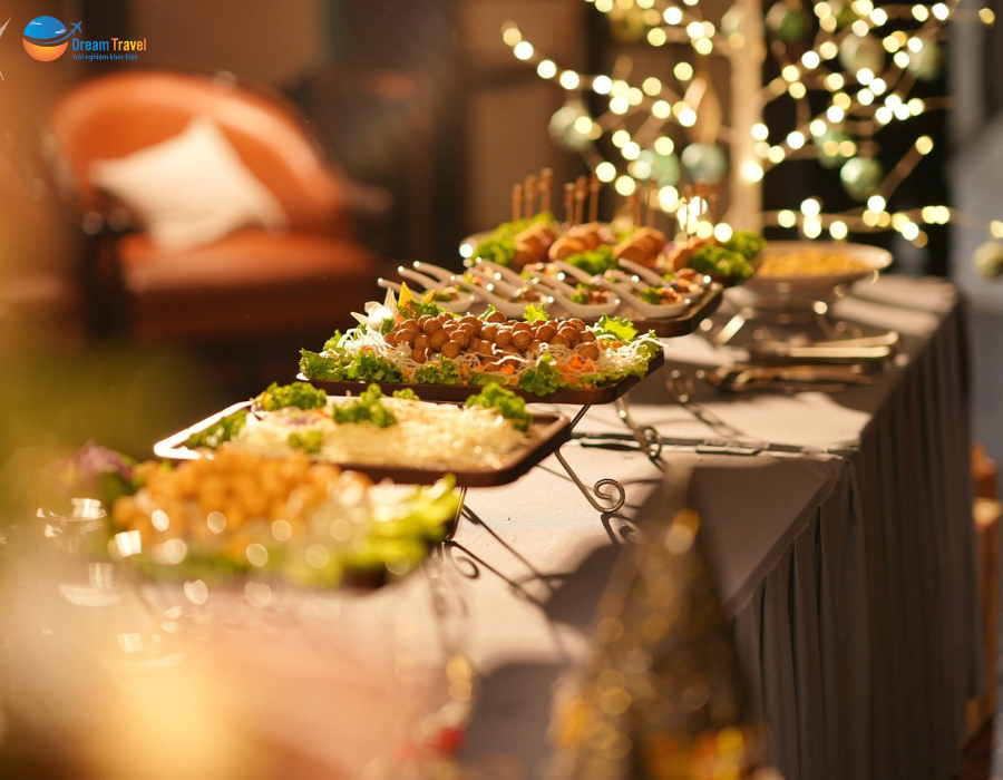 - Bữa tiệc đêm Noel: Trong không gian ấm cúng với nến và nhạc Giáng sinh, du khách sẽ được thưởng thức bữa tiệc đặc biệt gồm các món Âu-Á kết hợp, từ gà tây nướng, thịt nguội, bánh pudding đến các món hải sản tươi ngon.