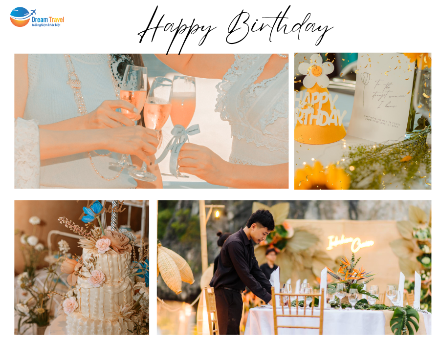Sinh nhật đáng nhớ: Tưởng tượng một bữa tiệc sinh nhật trên boong tàu, với ánh nắng vàng dịu nhẹ, gió biển mát lành và những gương mặt thân yêu cùng nhau hát vang bài chúc mừng sinh nhật. Du thuyền sẽ chuẩn bị một chiếc bánh kem tuyệt đẹp, những món ăn ngon miệng và cả một chương trình giải trí đặc sắc để bạn và bạn bè có những khoảnh khắc đáng nhớ nhất.