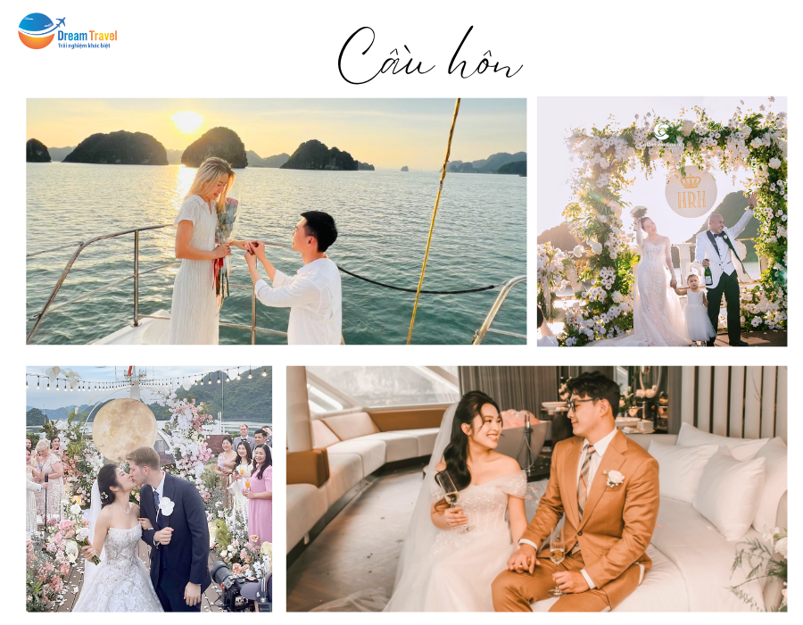 Cầu hôn lãng mạn: Bạn muốn cầu hôn người ấy trong một khung cảnh thật lãng mạn? Hãy chọn du thuyền vịnh Hạ Long. Khi hoàng hôn buông xuống, bạn có thể cùng người ấy dạo bước trên boong tàu, ngắm nhìn khung cảnh tuyệt đẹp của vịnh Hạ Long và nói lời yêu thương của mình. Đảm bảo rằng khoảnh khắc này sẽ trở thành kỷ niệm đẹp nhất trong cuộc đời của cả hai.