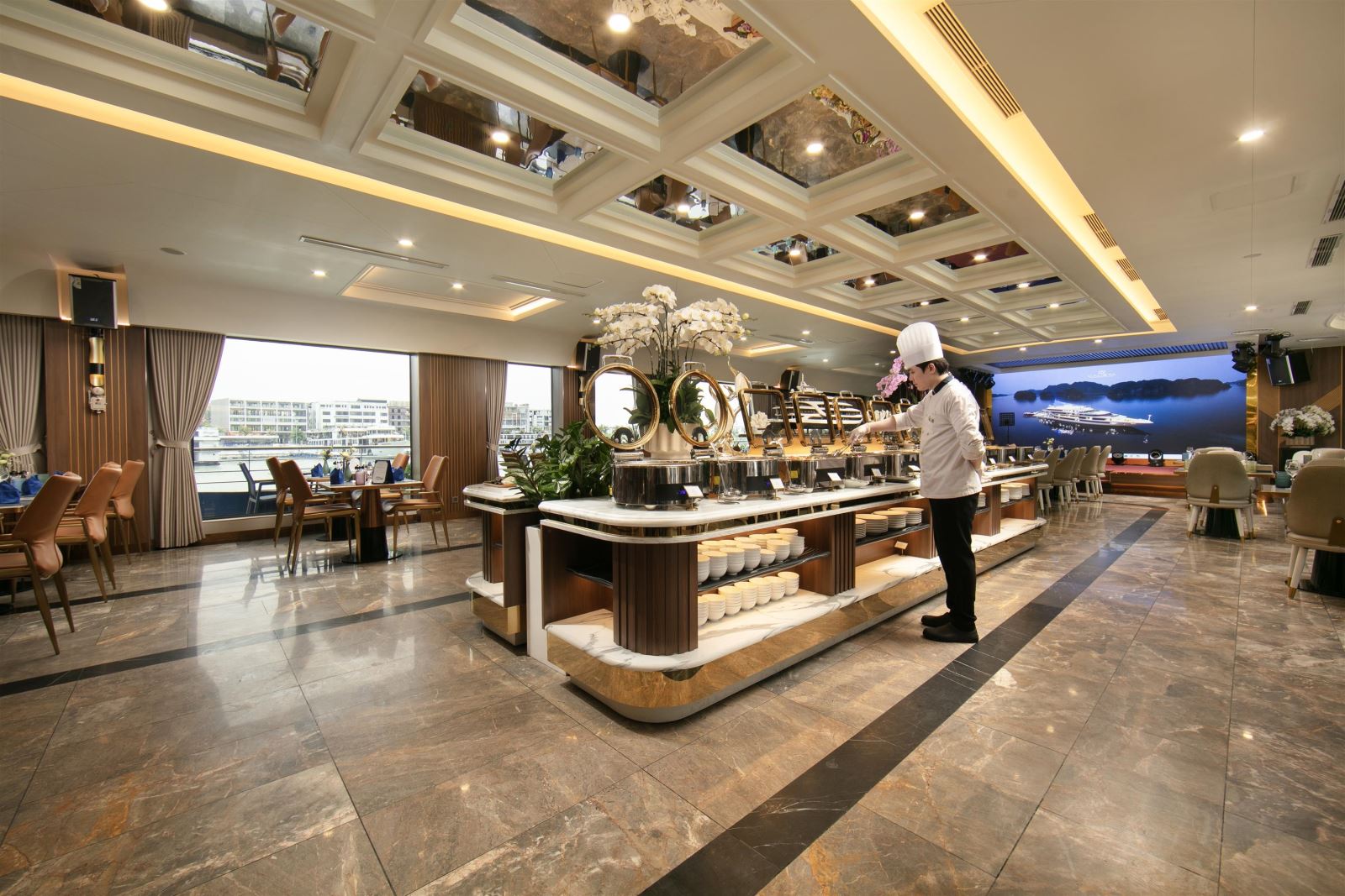 Thưởng thức một thực đơn đặc biệt tinh tế được thiết kế cẩn thận bởi các chuyên gia ẩm thực Việt Nam tài năng tại nhà hàng Bayview Dining sang trọng. Du khách có thể tận hưởng các món ăn ngon trong không gian thoáng đãng và ngắm nhìn các danh lam thắng cảnh như Làng chài Hoa Cương, Hòn Ngón Tay,... khi Du thuyền lướt qua Vịnh Hạ Long.