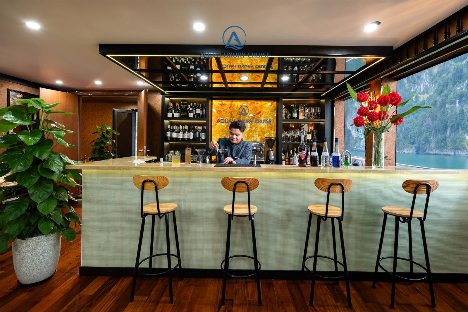 Quý khách tận hưởng không khí huyền ảo của vịnh về đêm trên sundeck, thưởng thức đồ uống tại quầy bar, câu mực hay hát karaoke thư giãn. Nghỉ đêm trên du thuyền Aqua Luxury trong không gian yên bình giữa thiên nhiên.