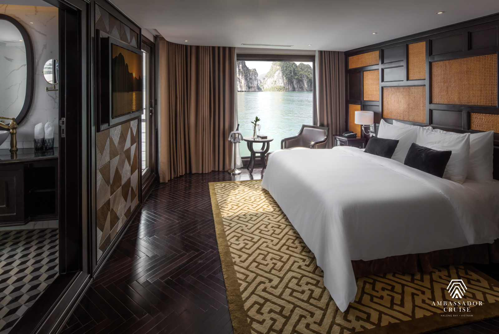 Du thuyền Ambassador Cruise Hạ Long là chiếc du thuyền cao cấp sang trọng đạt tiêu chuẩn 5 sao mới nhất được hạ thủy. Ambassador Cruise sẽ mang đến cho du khách những trải nghiệm và thư giãn bậc nhất với tuyến tham quan chính Vịnh Hạ Long – Hang Sửng Sốt – Đảo Titop - Hang Luồn