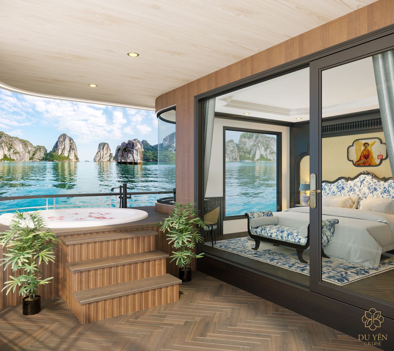 - 26 cabin hạng sang với ban công riêng, cửa sổ toàn cảnh hướng vịnh.