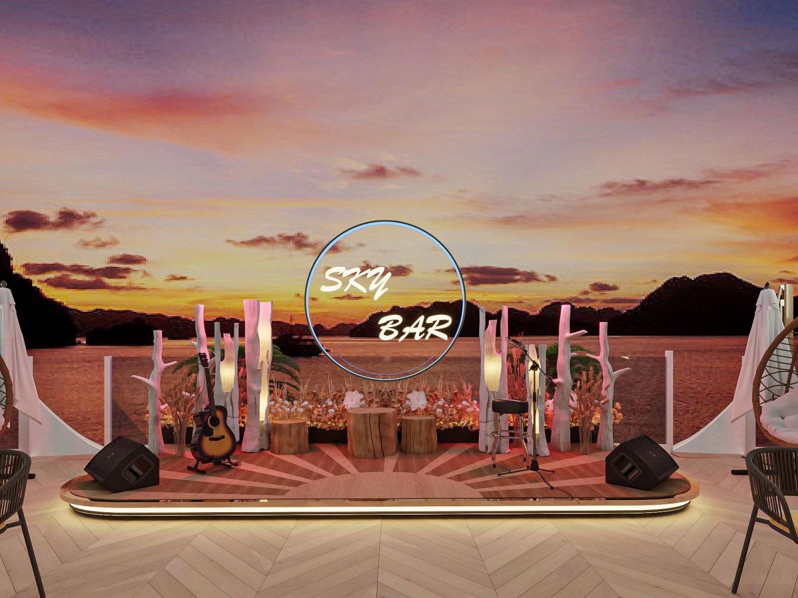 20:00 Giải trí & Ngắm cảnh - Khách hàng thưởng nhạc, ngắm nhìn điểm sáng đèn như Núi Bài Thơ, Cầu Bãi Cháy,vòng quay Mặt Trời.