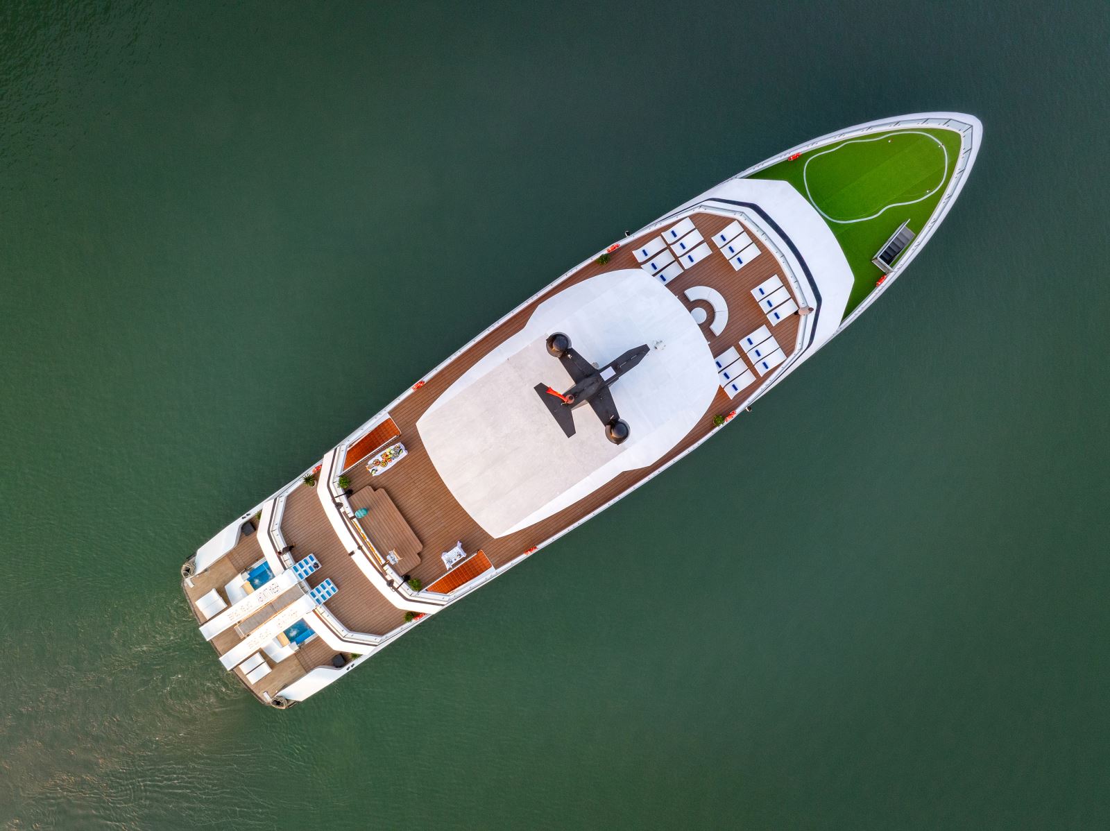 Một thiên đường tách biệt với làn nước xanh ngọc bích. Bạn có thể tắm biển, chơi cầu trượt nước từ boong tàu xuống biển, hoặc đơn giản nằm dài thư giãn trên ghế tắm nắng. Du khách sẽ tận hưởng khung cảnh tuyệt đẹp của kỳ quan thiên nhiên thế giới