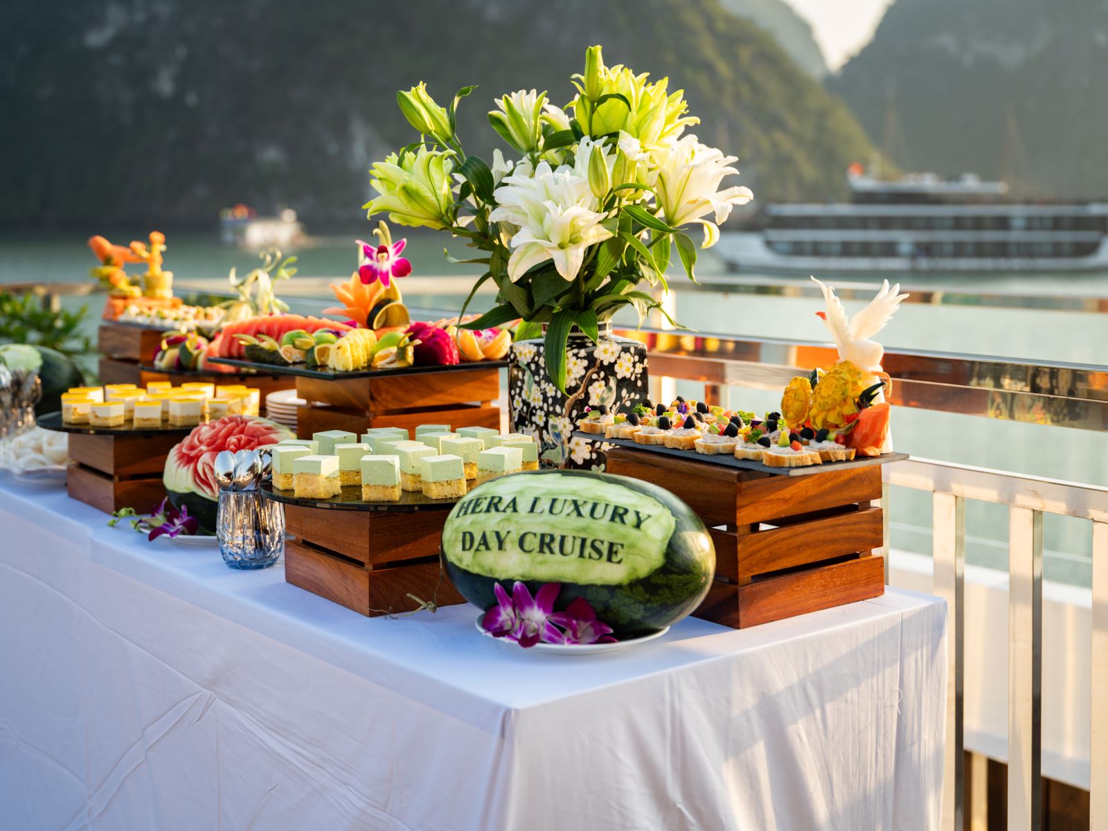 - Tiệc trà chiều trên sundeck (trà, café, bánh ngọt)