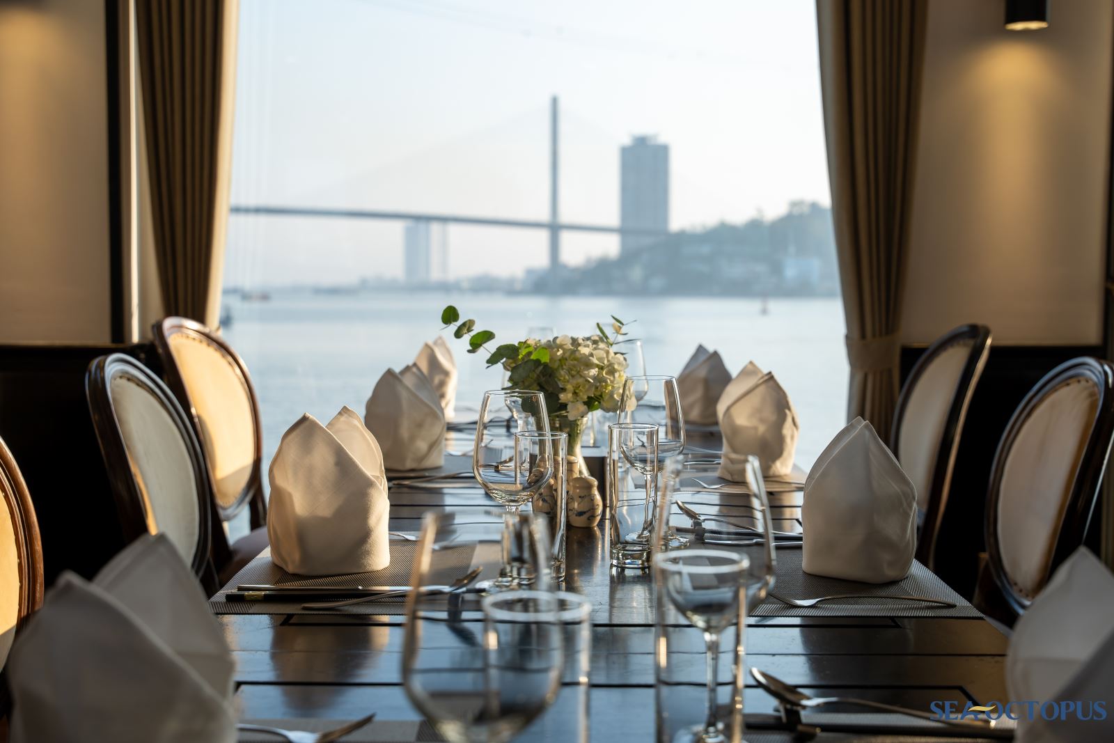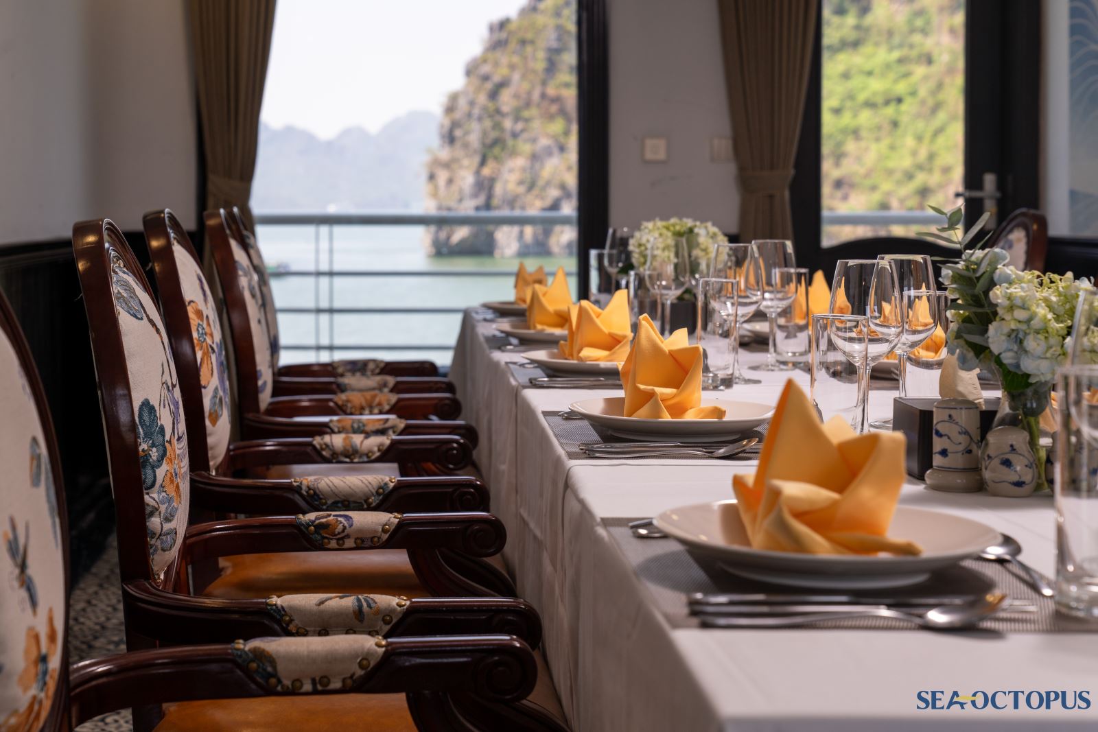Quý khách sẽ được ngắm nhìn khung cảnh hùng vĩ của vùng đất rồng thiêng - Vịnh Hạ Long trong khi du thuyền Sea Octopus lướt trên những con sóng lấp lánh.